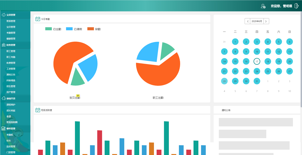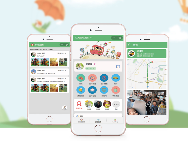 "智慧幼兒園”設立教師管理、寶貝管理、辦公管理、健康管理、家校溝通、家園共育等六大子系統,運用了人臉識別、物聯網、無感考勤、校車定位、Al健康分析等前沿技術,形成一 套完備的智慧幼兒園解決方案。